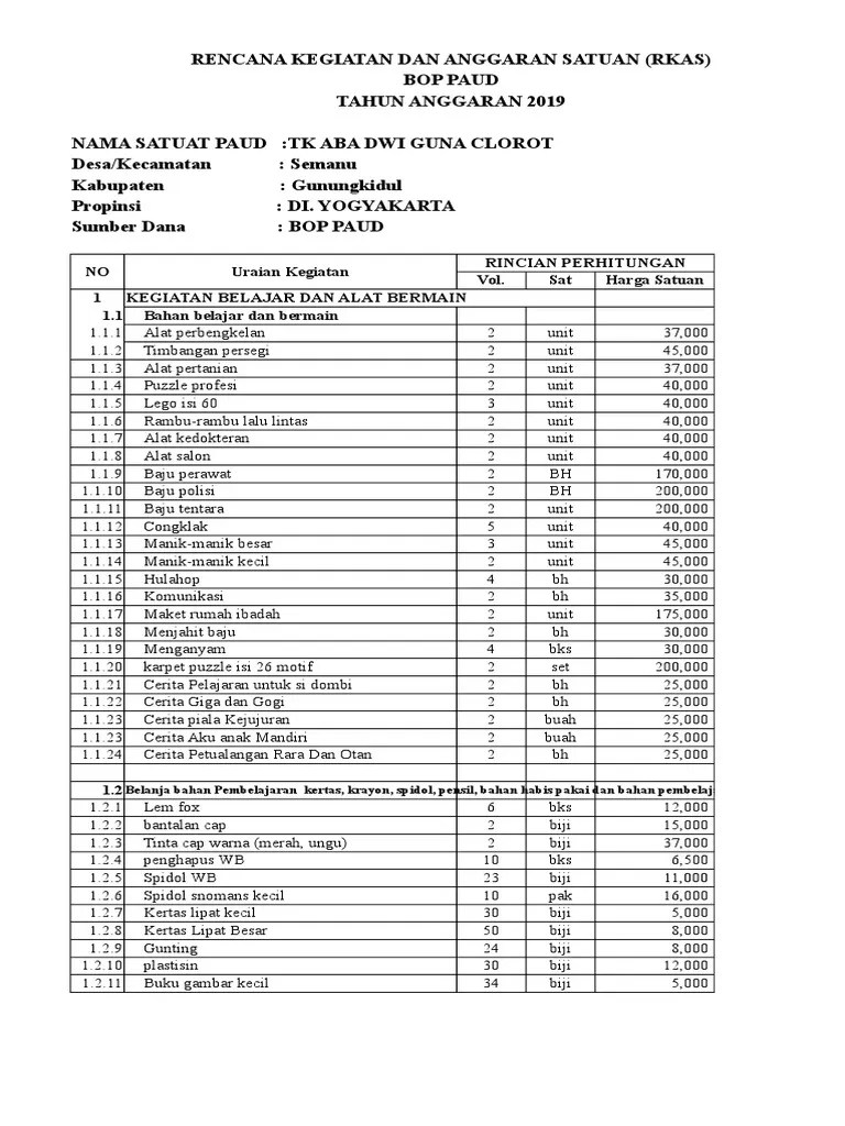 Rkas bop paud tahun 2021/2022 tahap 1 dan 2sesuai juknis. No uraian kegiatan biaya waktu. Dalam melaksanakan sesuatu yang berkaitan dengan anggaran harus membuat sebuah. Tk, kb, sps, tpa ………………………. Bop tahun 2021 untuk lembaga satuan pendidikan paud dan lembaga . Sukabumi himbau lembaga paud gunakan bop 2021 sesuai juknis dan rkas. Berikut adalah contoh rkas bop tahun 2021 . Perbaikan rkas perubahan sesuai dengan tahap 3 tahun 2021; Unduh contoh rencana kegiatan anggaran sekolah rkas paud dan. Anak usia dinidan pendidikan kesetaraan tahun anggaran 2020 juknis bop paud . Cara memperoleh kode registrasi aplikasi dapodik tk/ paud, sd, smp, sma, . Format bop02 rencana kegiatan dan anggaran satuan (rkas) paud tahun anggaran 2018 nama satuan : Dak non fisik kabupaten tahun anggaran 2017.